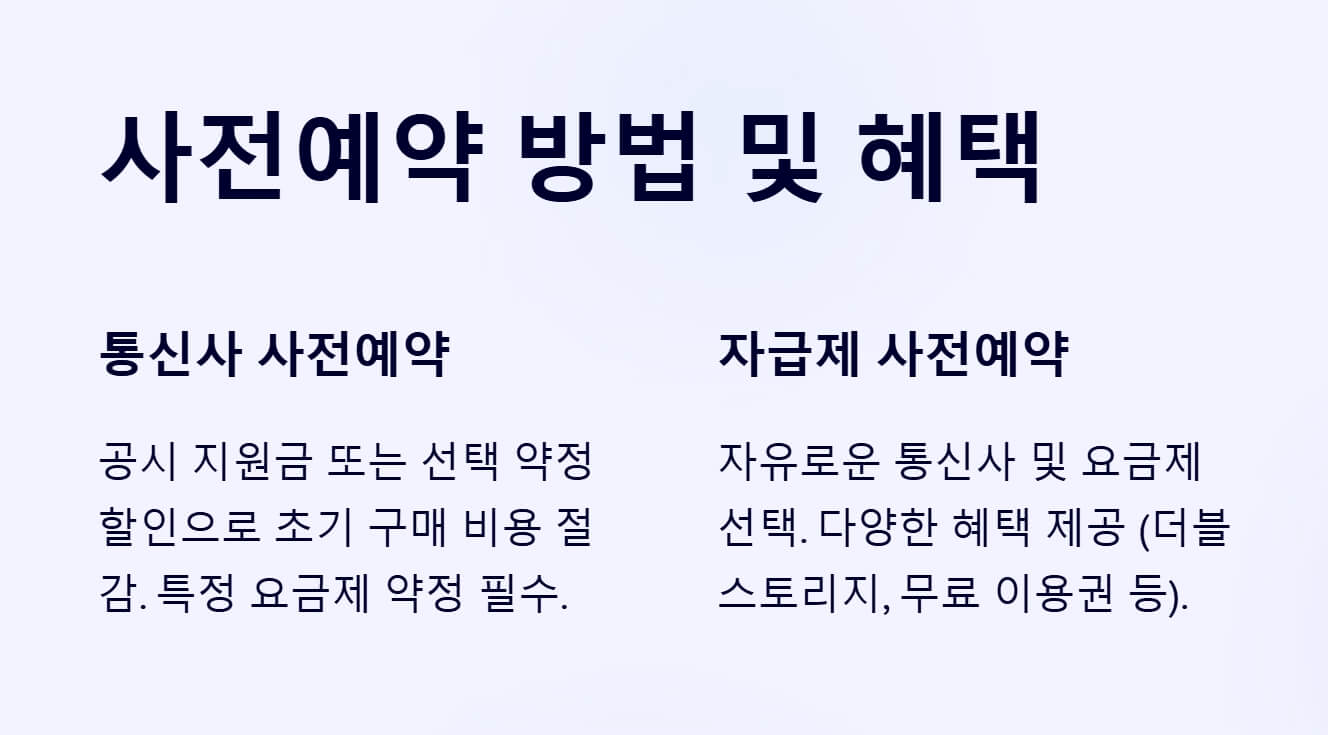 2. 갤럭시 S25 사전예약 방법 및 혜택 비교 (통신사 vs 자급제)