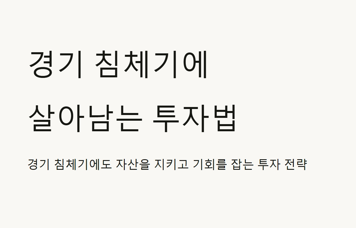 이 글에서는 지난 10년간의 투자 경험과 현재의 경제 상황을 바탕으로, 경기 침체기에 살아남고 오히려 기회를 잡을 수 있는 투자 전략을 공유하고자 합니다.
