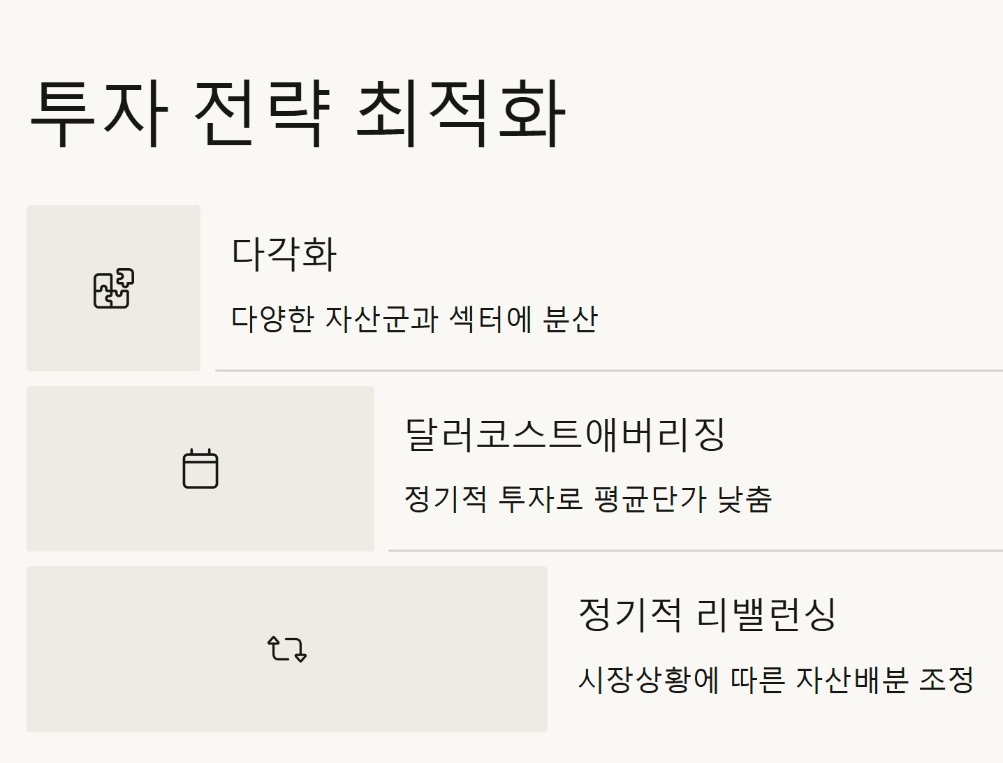 • 정기적인 포트폴리오 리밸런싱: 시