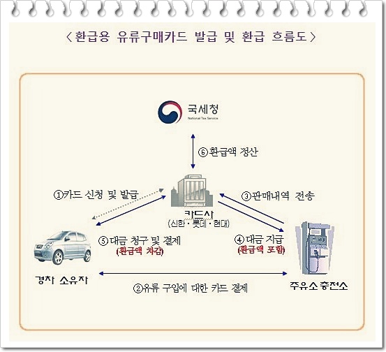 - 유류세 환급은 반드시 이 전용카드로 결제해야 하며, 일반 주유 할인카드로는 환급 불가
