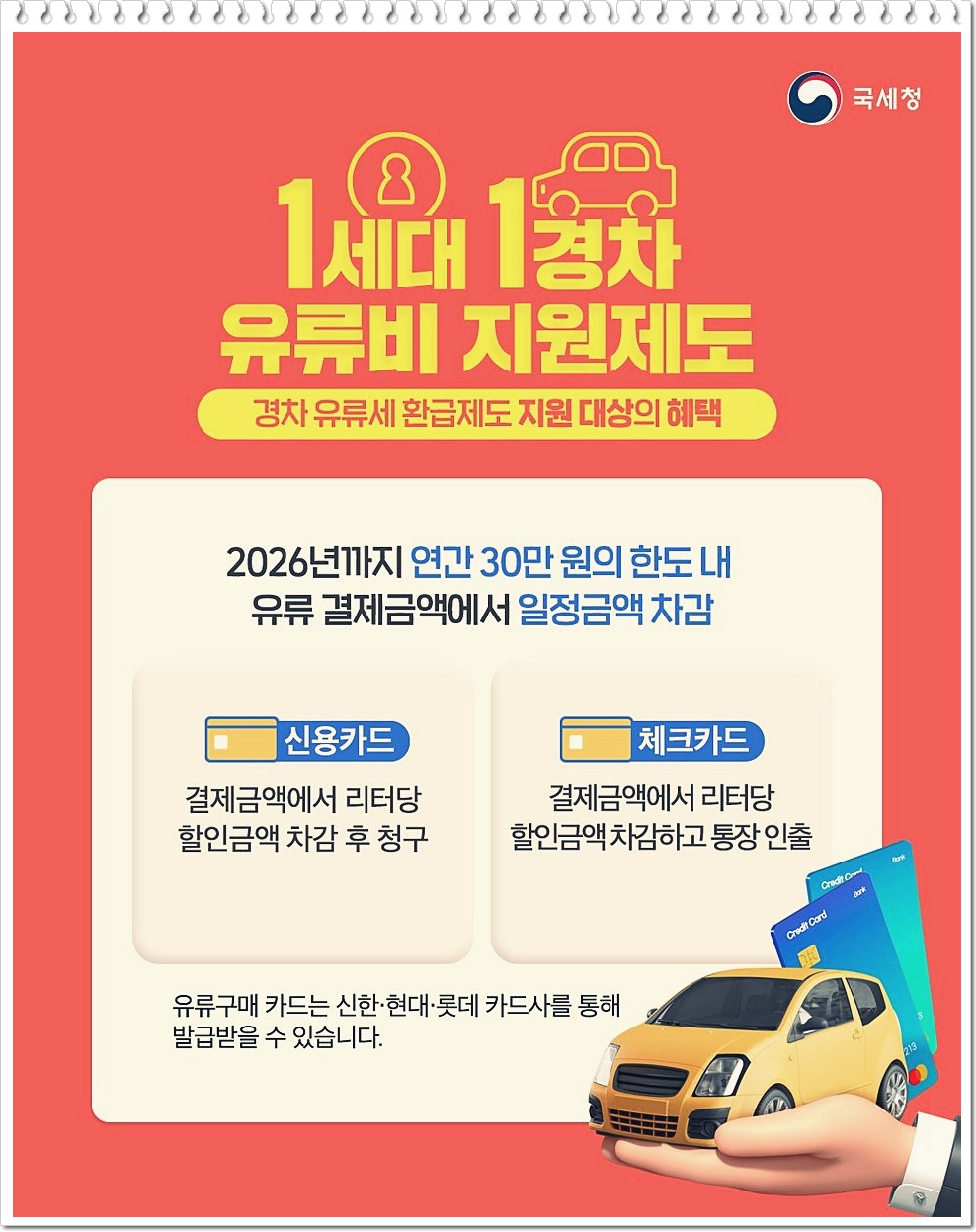 🚗 경차 유류세 환급카드 조건 확인하고 30만원 혜택 받는 방법 공유
