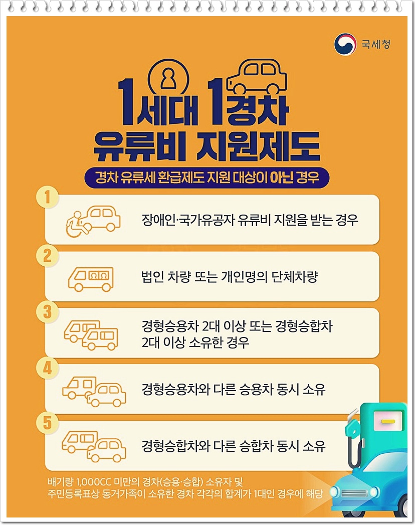 작은 차체, 합리적인 연비를 자랑하는 경형 자동차 소유자에게 정부가 제공하는 연료비 절감 혜택입니다.