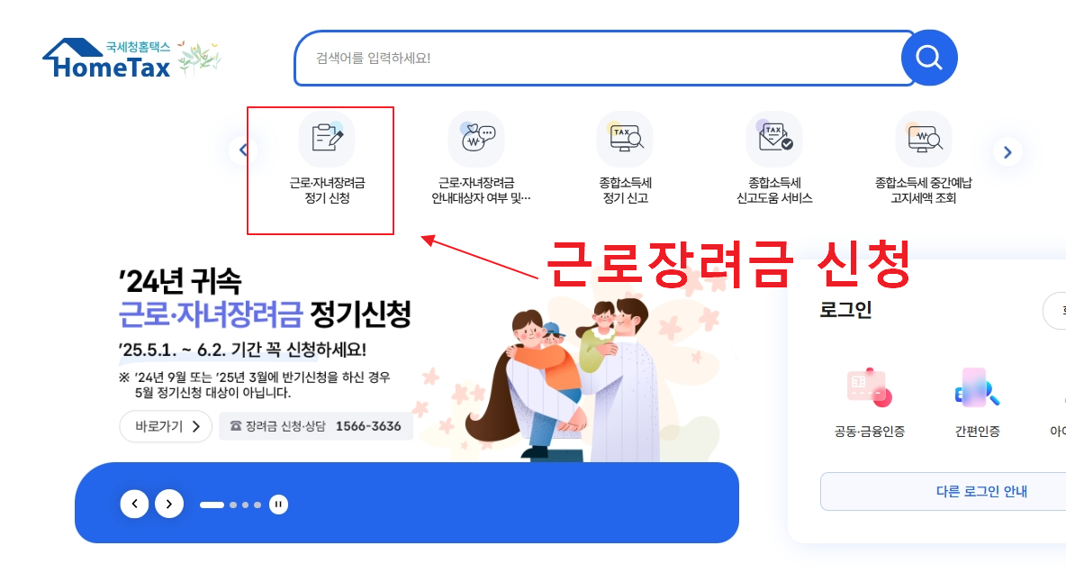 국세청 홈택스 웹사이트에 접속하여 로그인 후, '신청/제출' 메뉴에서 '근로·자녀장려금 신청'을 클릭하여 진행할 수 있습니다. - 전화 (ARS):