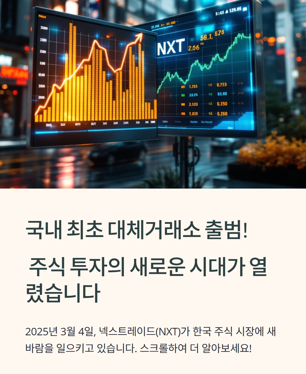 2025년 3월 4일, 국내 최초의 대체거래소인 넥스트레이드(NXT)가 출범하며 한국 주식 시장에 새로운 변화가 시작되었습니다.