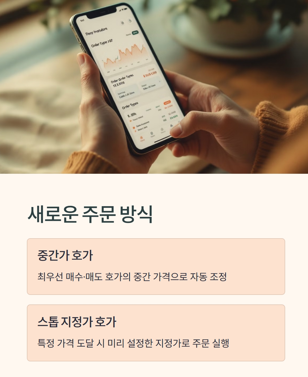 새로운 호가 유형(중간가, 스톱 지정가 등)을 통해 보다 정교한 매매 전략을 구사할 수 있습니다.