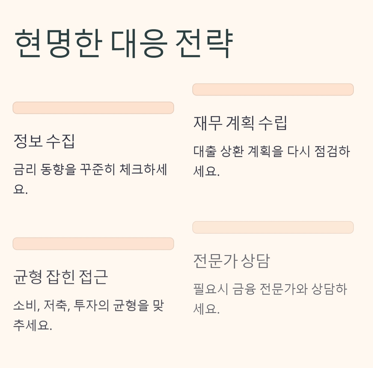또 하나, 금리가 너무 낮아지면 나중에 올라갈 때를 대비해야 해요. 변동금리로 대출받은 분들은 특히 주의가 필요하답니다.