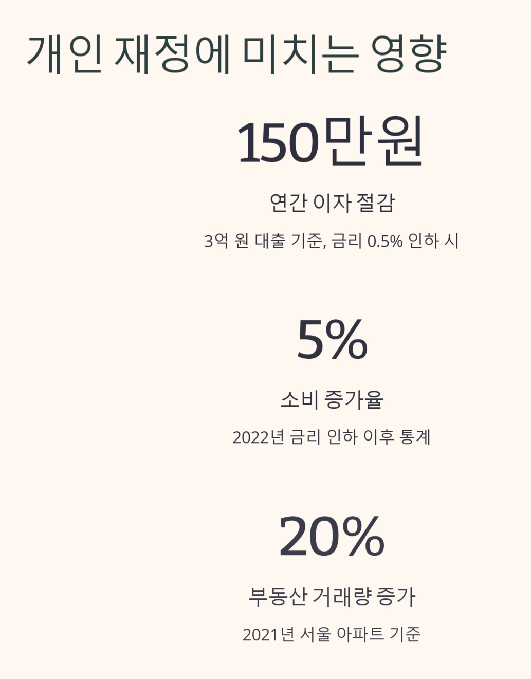 예를 들어, 금리가 1% 내려가면 대출 이자가 줄어든 만큼 커피 한 잔 더 사 먹거나, 아니면 주식에 투자해볼까 고민하게 되더라고요. 실제로 2022년 금리 인하 이후 소비자 지출이 5% 늘었다는 통계도 있었답니다.