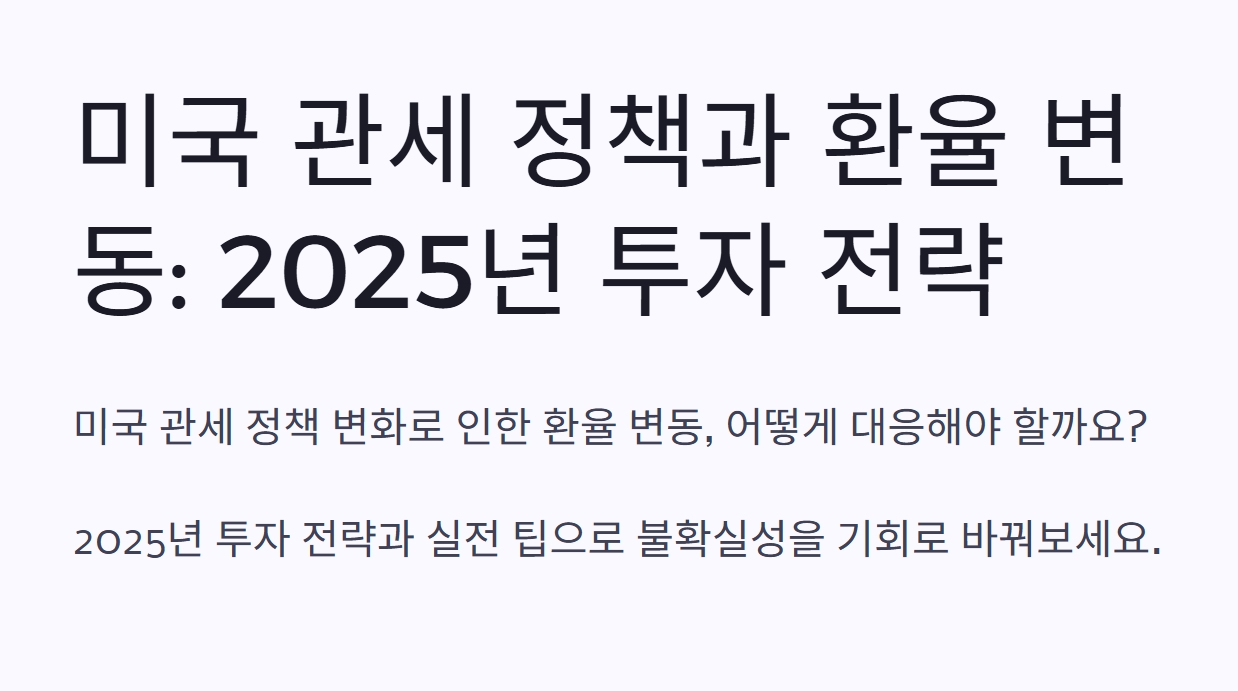 미국 관세 정책 변화로 인한 환율 변동, 어떻게 대응해야 할까? 2025년 투자 전략과 실전 팁으로 불확실성을 기회로 바꾸세요!