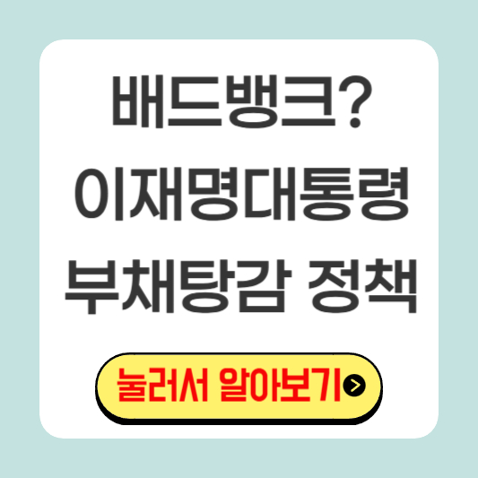 배드뱅크란? 이재명 대통령 대선 공약중 하나인 부채 탕감 및 경감 정책에 대해 알아보겠습니다.