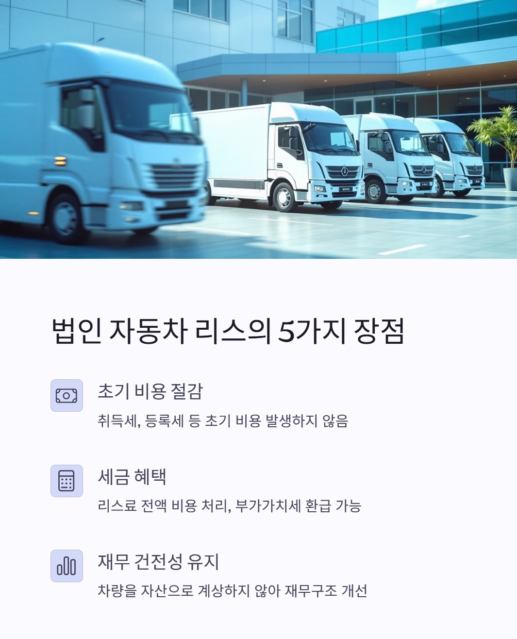 리스료는 전액 비용 처리 가능하며, 부가가치세 환급 혜택도 받을 수 있습니다. - 재무 건전성 유지: