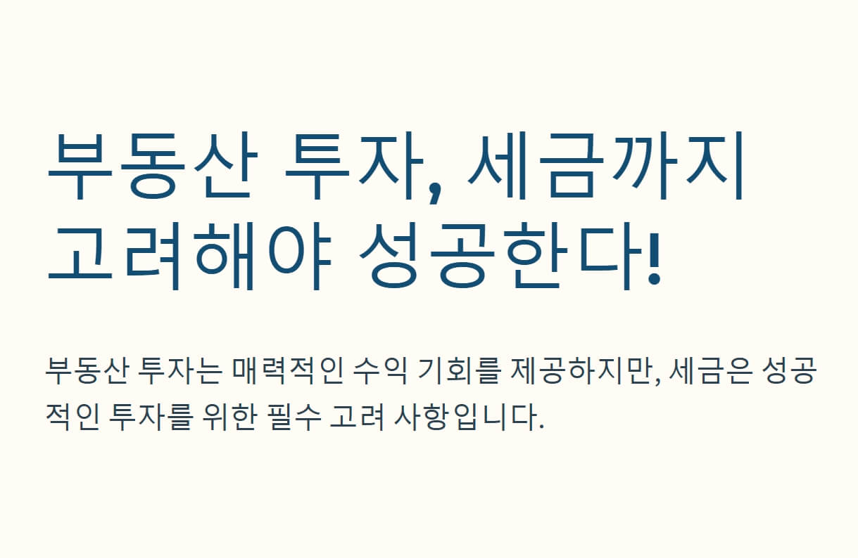 부동산 투자에서 수익만큼 중요한 것이 바로 세금이에요!