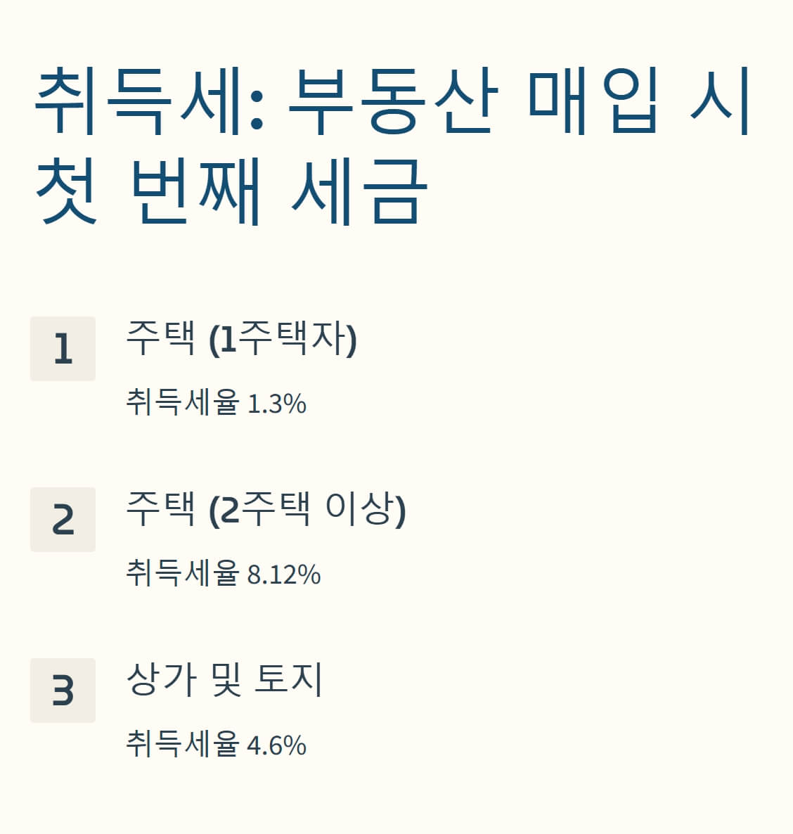 2️⃣ 취득세: 부동산 매입 시 첫 번째 세금