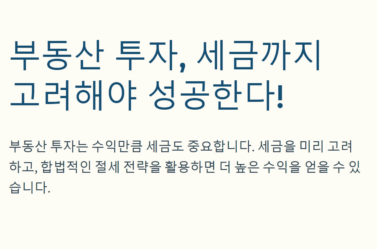 🔎 결론: 부동산 투자, 세금까지 고려해야 성공한다!