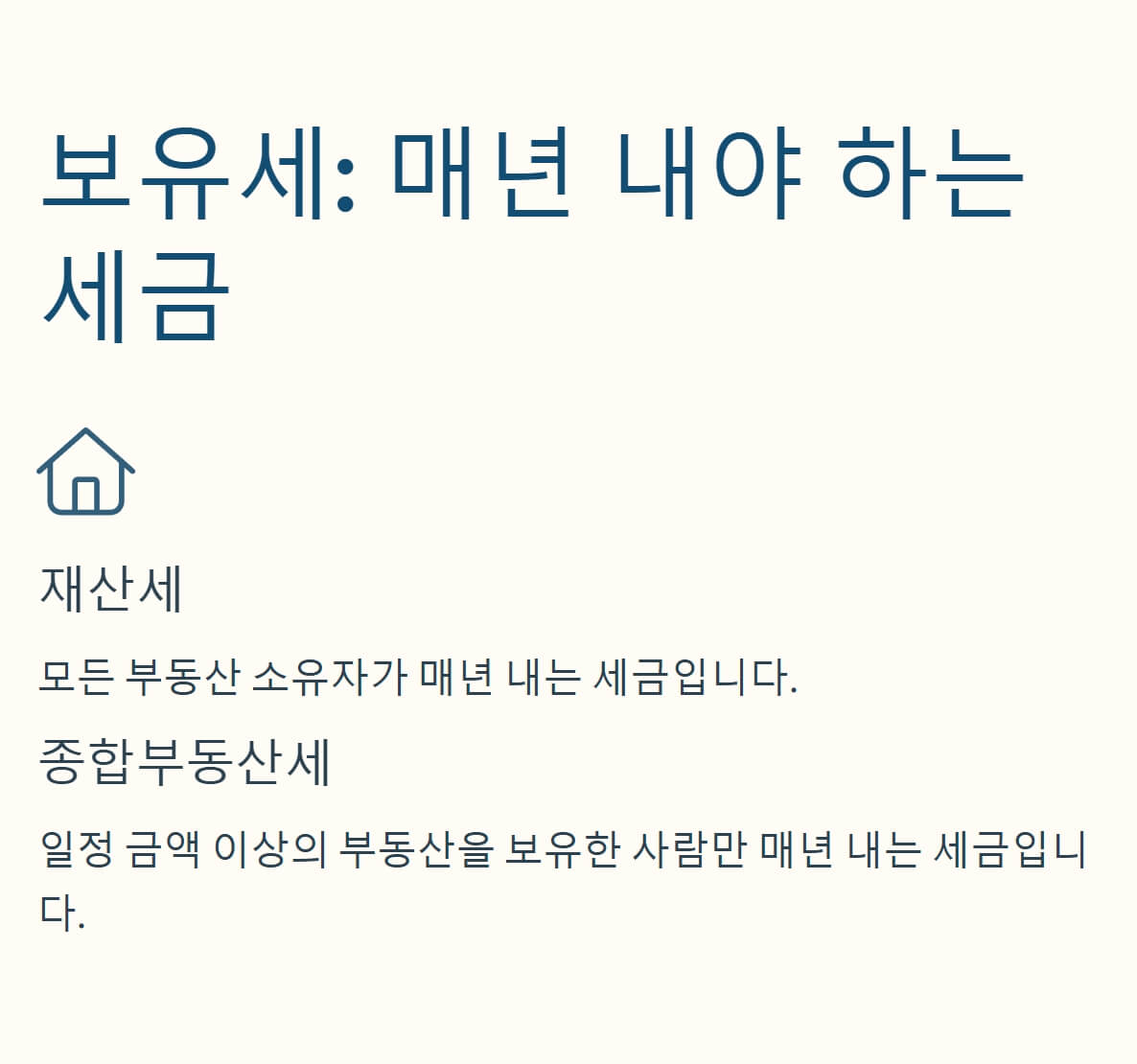 보유세(재산세 & 종부세): 집을 가지고 있을 때 매년 내는 세금
