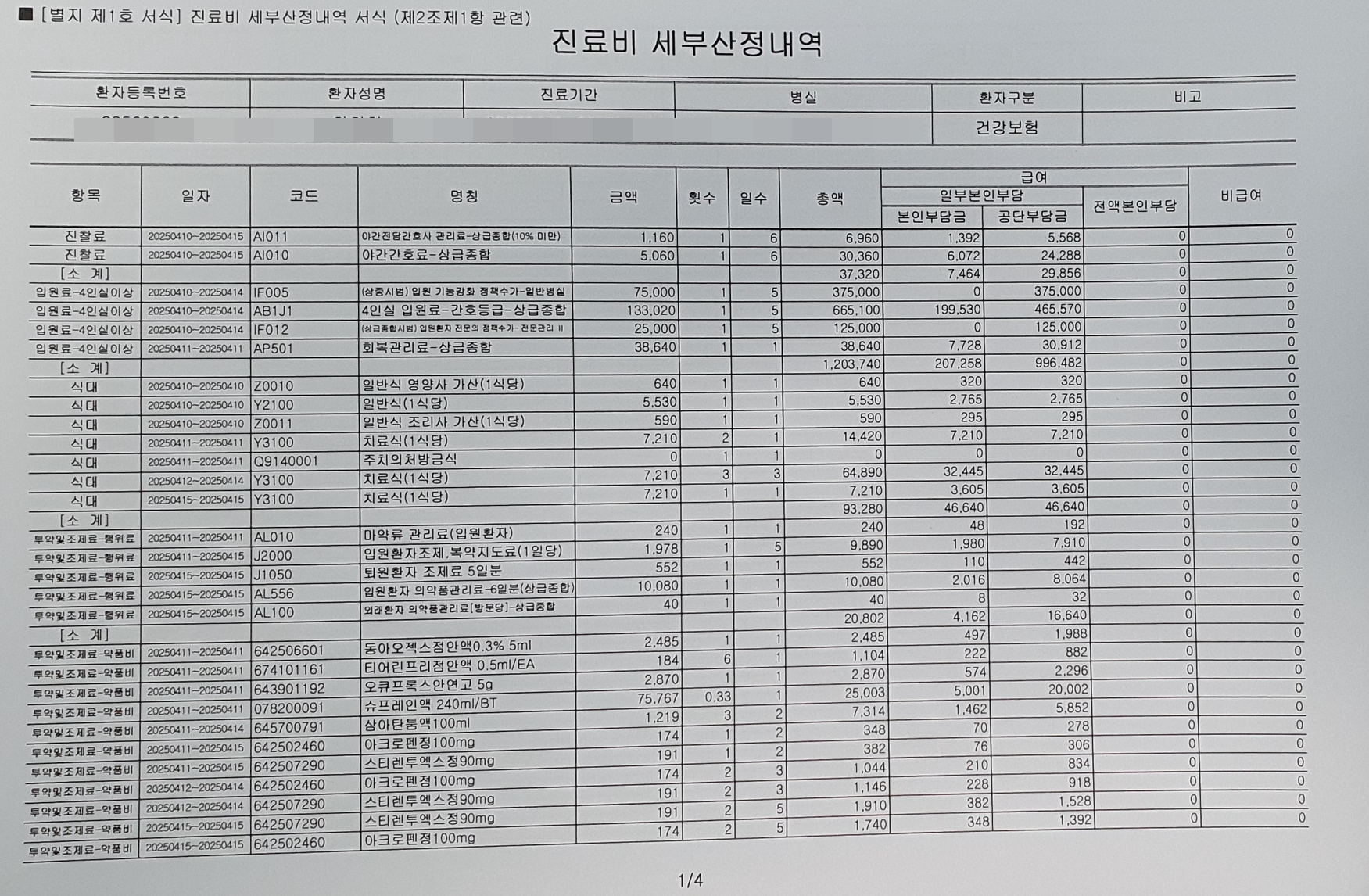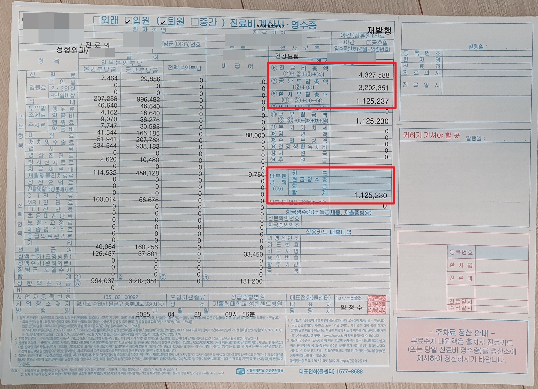 그래서 이번 상급종합병원 수술비가 많이 나오지 않을까 생각했지만 의외로 국민건강보험공단 부담액이 높고 본인부담액이 적어서 놀라기도 했습니다.