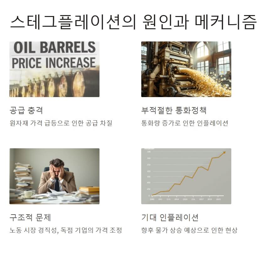 스테그플레이션이 발생하는 주요 원인으로는 여러 요소가 있지만, 가장 대표적인 것은 다음과 같습니다:
