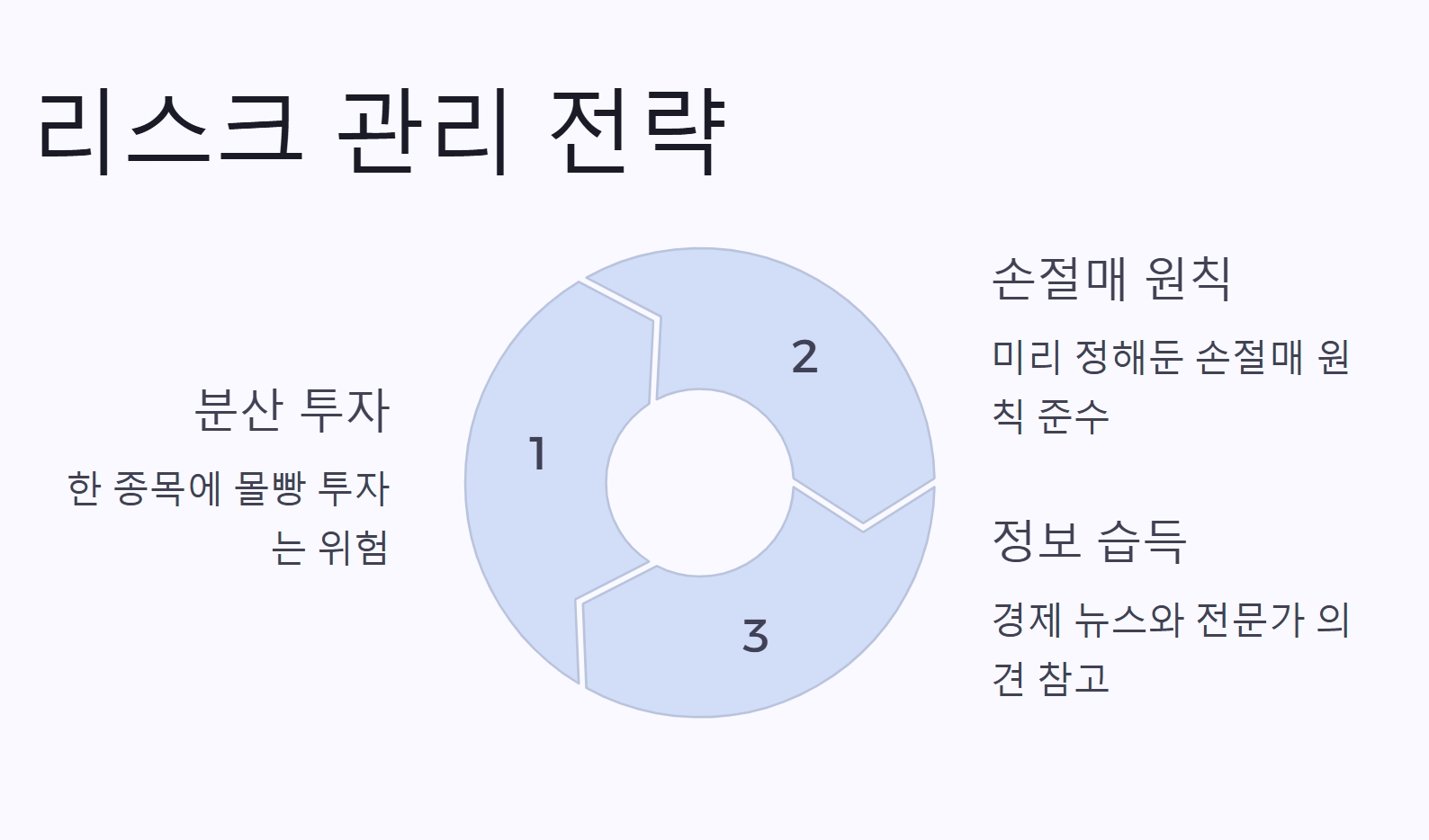 어떤 투자든 리스크 관리는 필수입니다. 특히 이 시기에는 변동성이 커지기 때문에 더욱 주의해야 합니다.