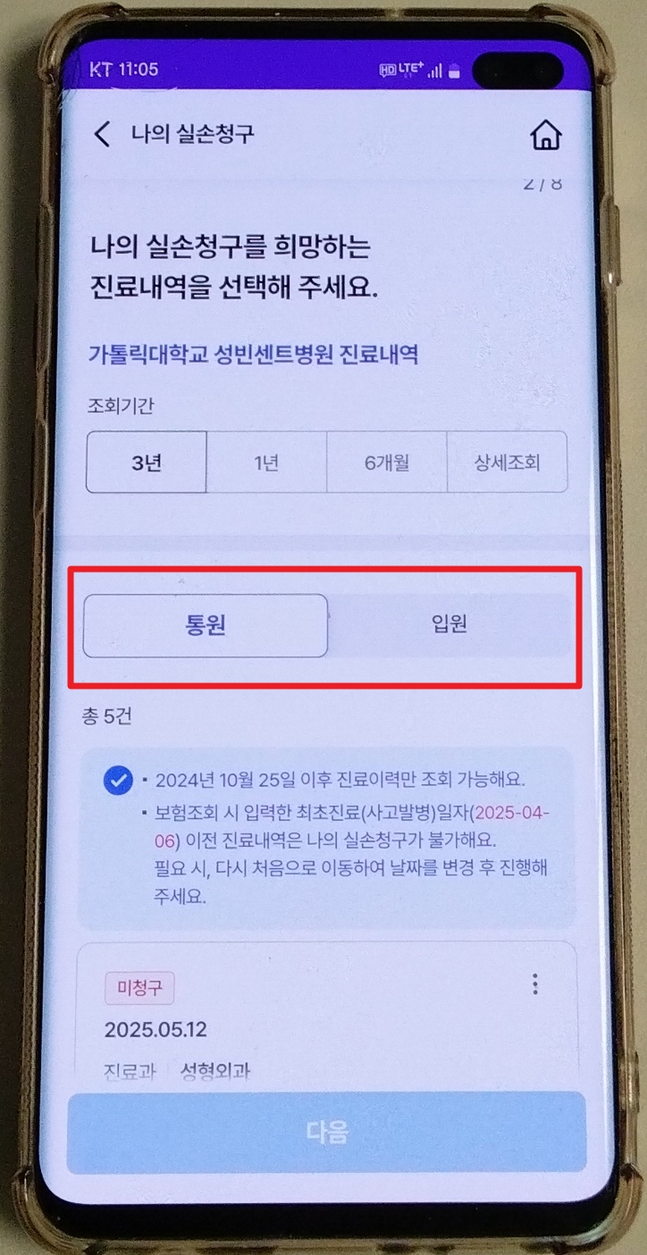 또한, 병원 명칭으로 검색이 가능하여 편리합니다. 제가 수술을 받고 통원 치료를 받았던 대학병원 역시 실손24 협력 병원이라 별도의 서류 없이 통원 의료비 신청을 진행할 수 있었습니다.