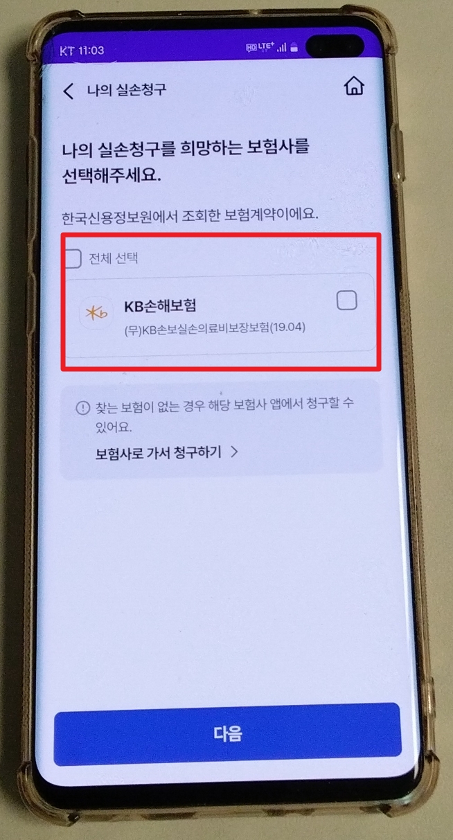 3-3. 청구 보험사 선택 후 치료한 병원 선택