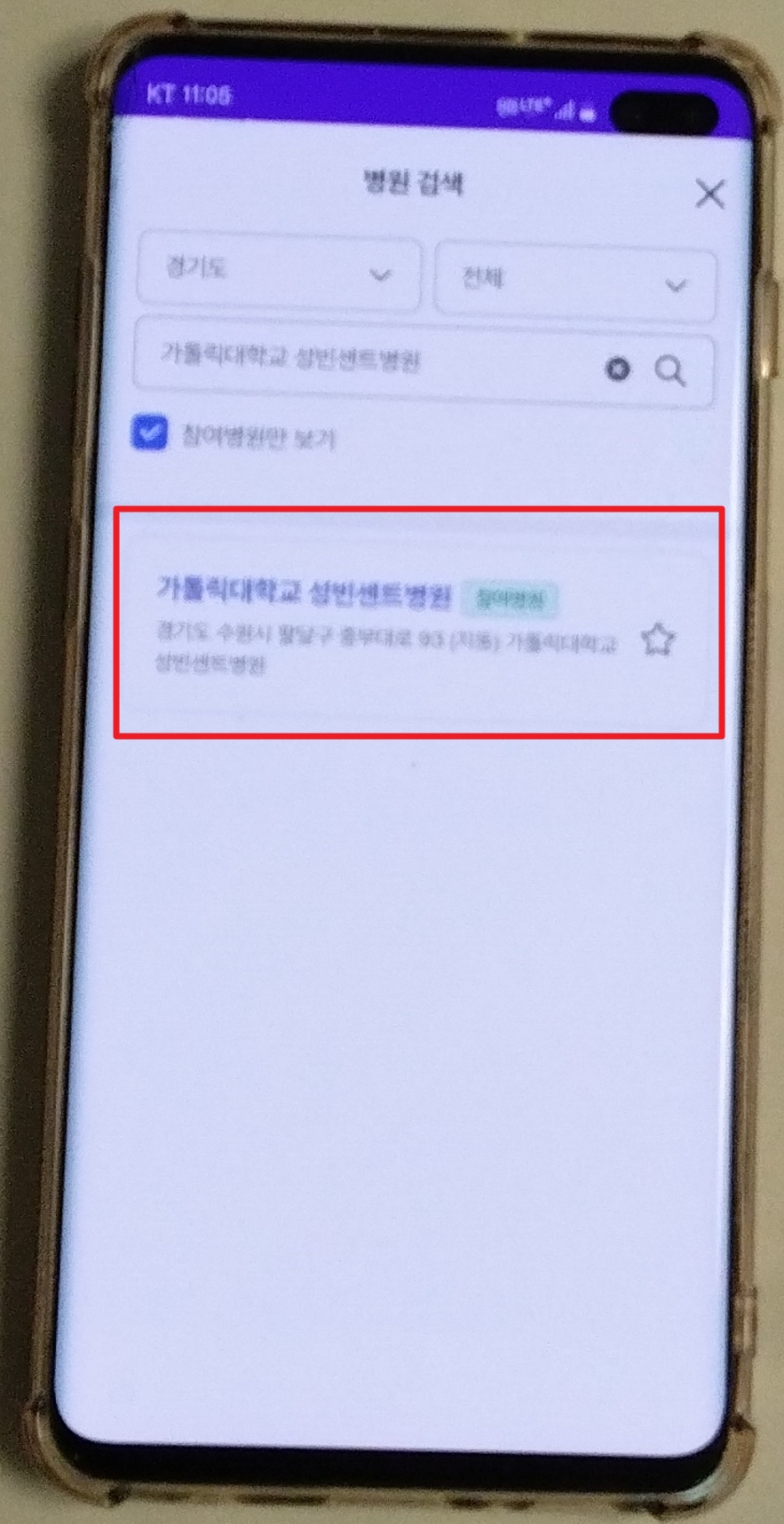 • 협력 병원 여부 확인: