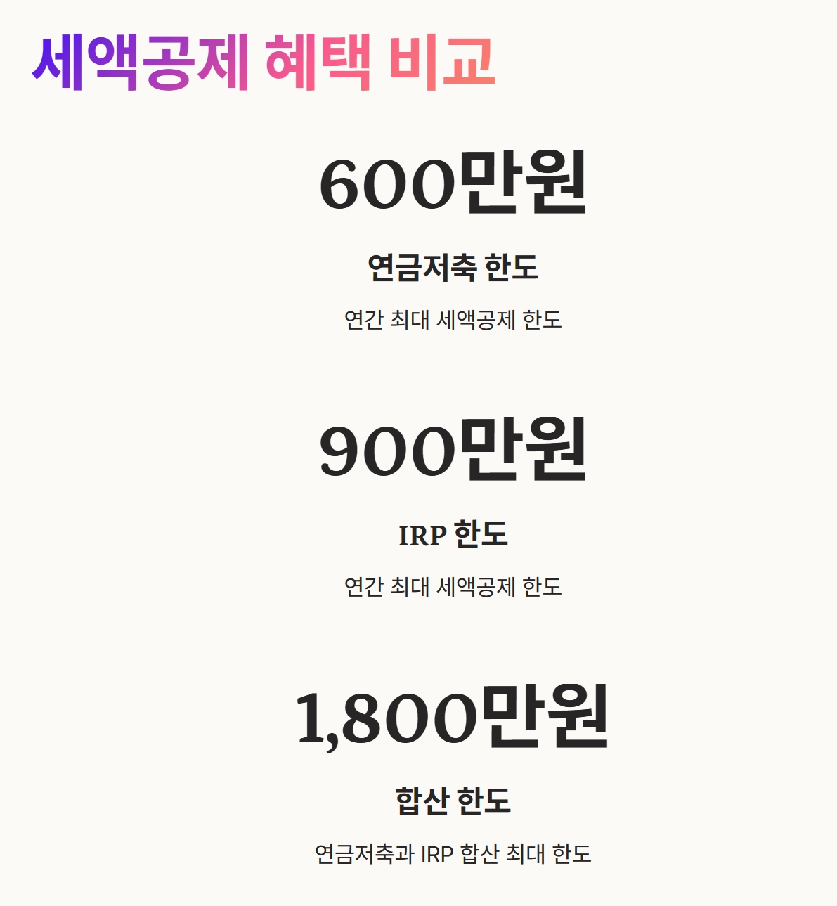 IRP가 더 높은 세액공제 한도를 제공하지만, 연금저축과 IRP를 합산하여 연간 최대 1,800만 원까지 세액공제를 받을 수 있다는 점을 기억해야 합니다.