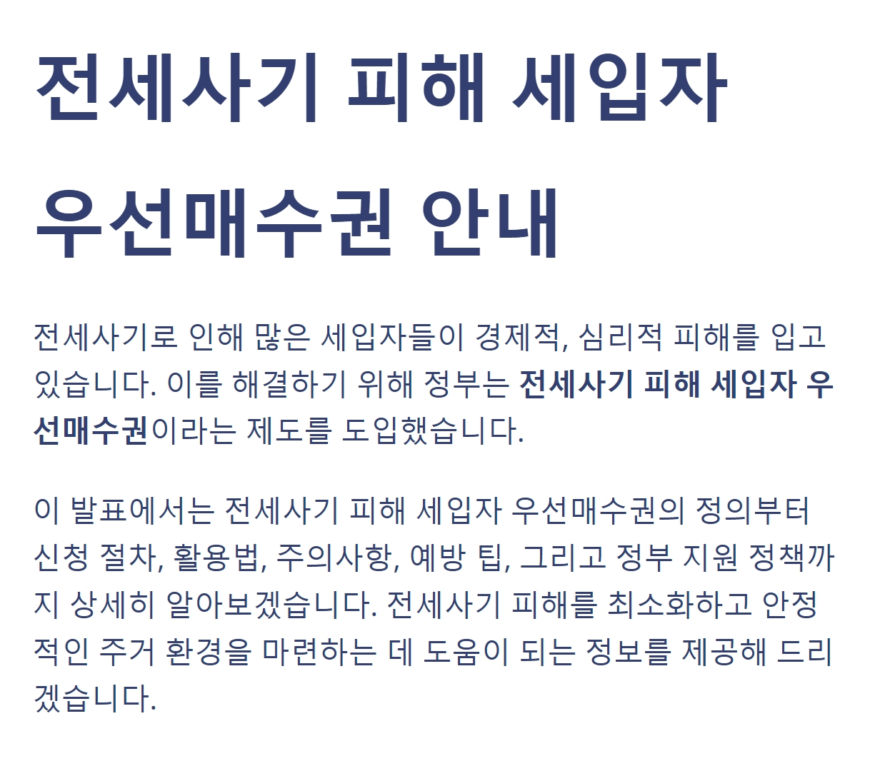 전세사기 피해 세입자 우선매수권은 피해 복구와 주거 안정성을 위한 중요한 제도입니다.