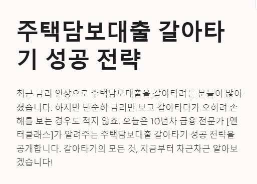 다음 글 예고: "주택담보대출 상환 방법별 장단점 비교"에 대해 알아보는 시간을 갖도록 하겠씁니다.