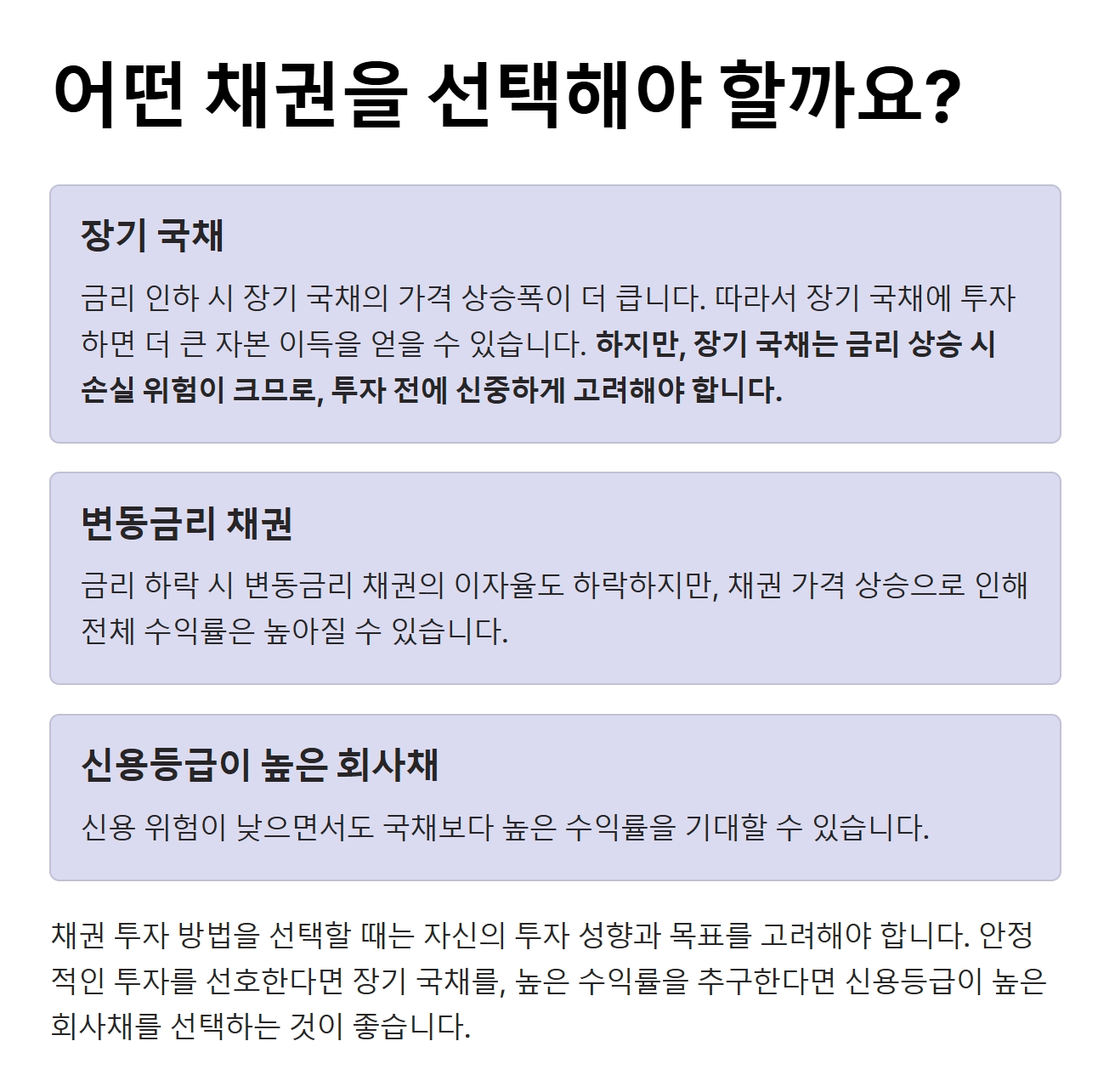 3. 어떤 채권을 선택해야 할까요? (금리 인하 시대 전략)