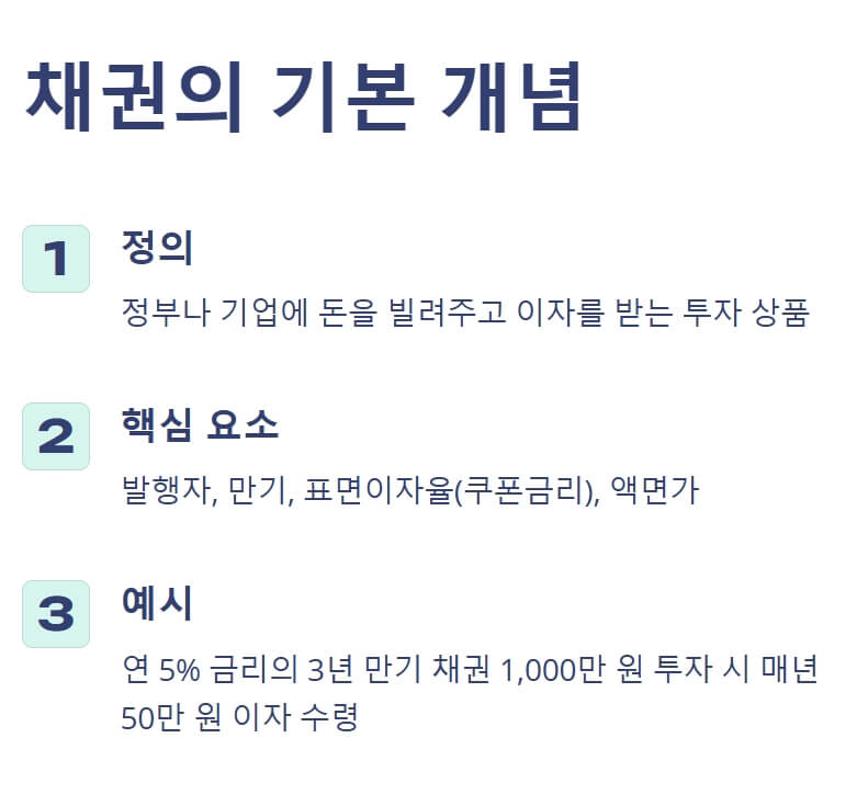 채권이란 쉽게 말해 정부나 기업에 돈을 빌려주고, 그 대가로 이자를 받는 투자 상품이에요.