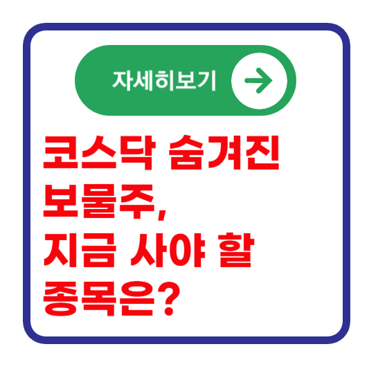 코스닥 숨겨진 보물주 공개! 10년 투자 경험으로 찾은 지금 사야 할 종목과 전략을 알아보세요.
