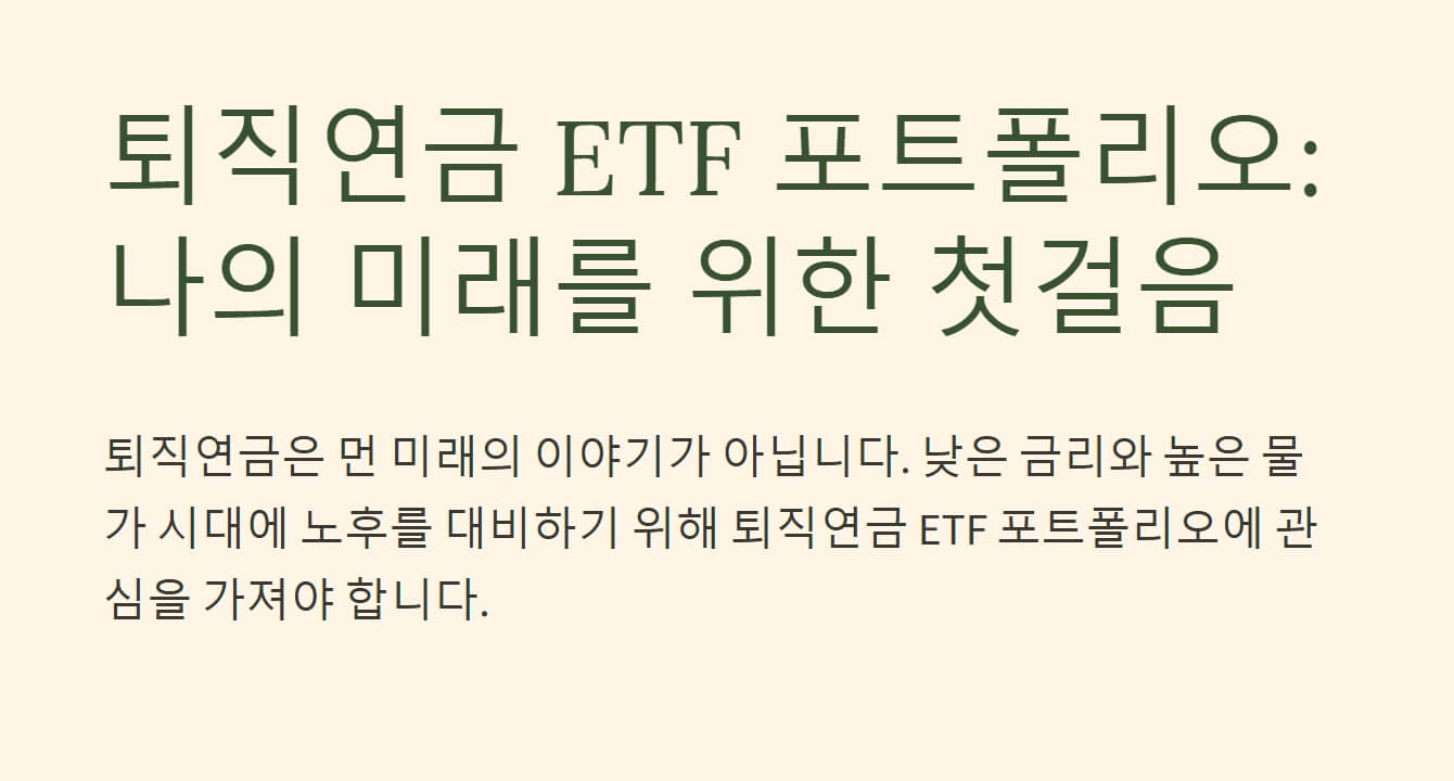 걱정 마세요! 오늘은 제가 그동안 쌓아온 지식과 경험을 바탕으로 퇴직연금 ETF 포트폴리오 구성에 대한 모든 것을 알려드릴게요. 이 글을 통해 여러분의 노후 준비에 조금이나마 도움이 되었으면 좋겠습니다! 🙏