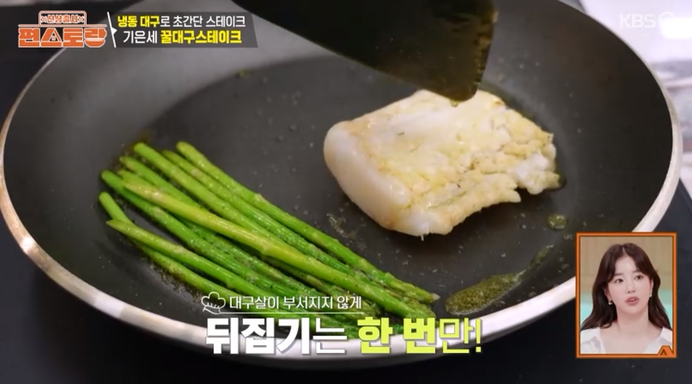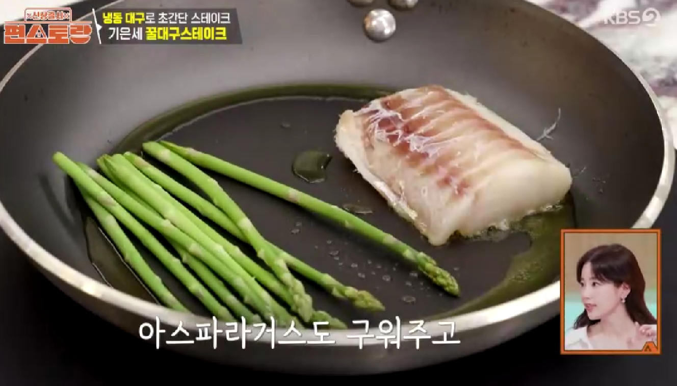 2️⃣ 대구와 아스파라거스 굽기 – 노릇하게 익히는 기술!