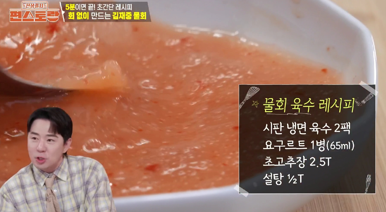 | 편스토랑 김준현 김치말이국수 레시피 꿀김치말이국수 황금비율 양념 공개 (0) | 2025.07.05 |