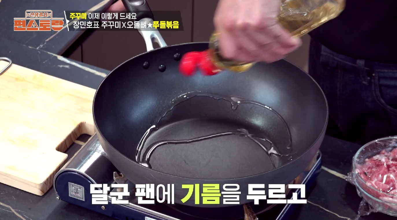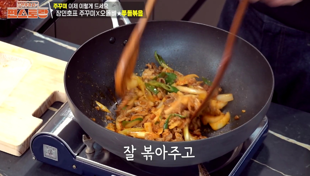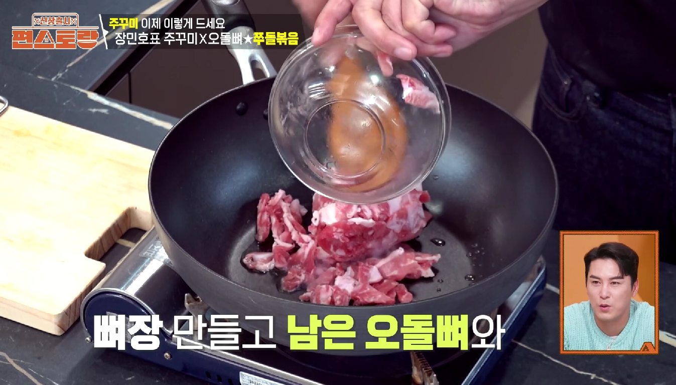 그러던 중 '주방의 신사' 장민호 님이 선보인 쭈돌볶음 레시피를 보게 되었습니다! 😮 직접 만든 '뼈장'을 활용한다고 해서 더욱 기대가 되었습니다.
