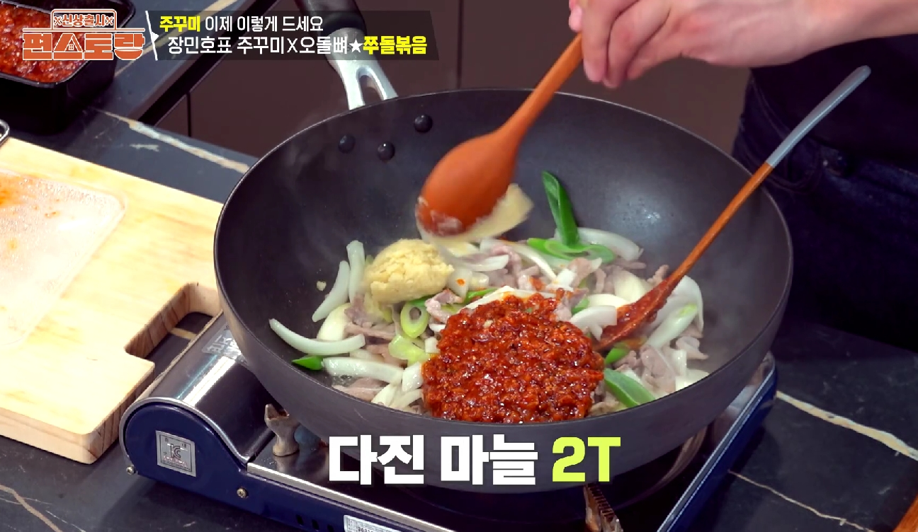 그러던 중 '주방의 신사' 장민호 님이 선보인 쭈돌볶음 레시피를 보게 되었습니다! 😮 직접 만든 '뼈장'을 활용한다고 해서 더욱 기대가 되었습니다.