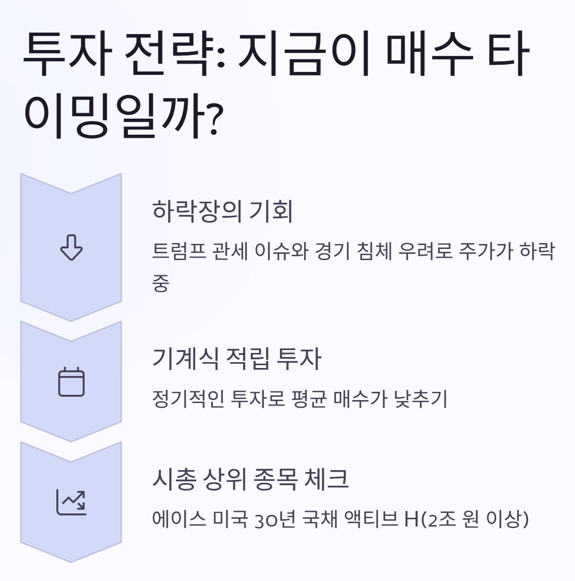 최근 트럼프 관세 이슈와 경기 침체 우려로 주가가 더 빠지고 있어요. 저는 이런 때일수록 기계식 적립 투자를 이어가고 있습니다. 예를 들어, 타이거 CD 금리 플러스 액티브 같은 금리형 ETF는 변동성이 적어 마음이 편하더군요. 여러분도 하락장을 두려워하기보다 기회로 보시면 어떨까요?
