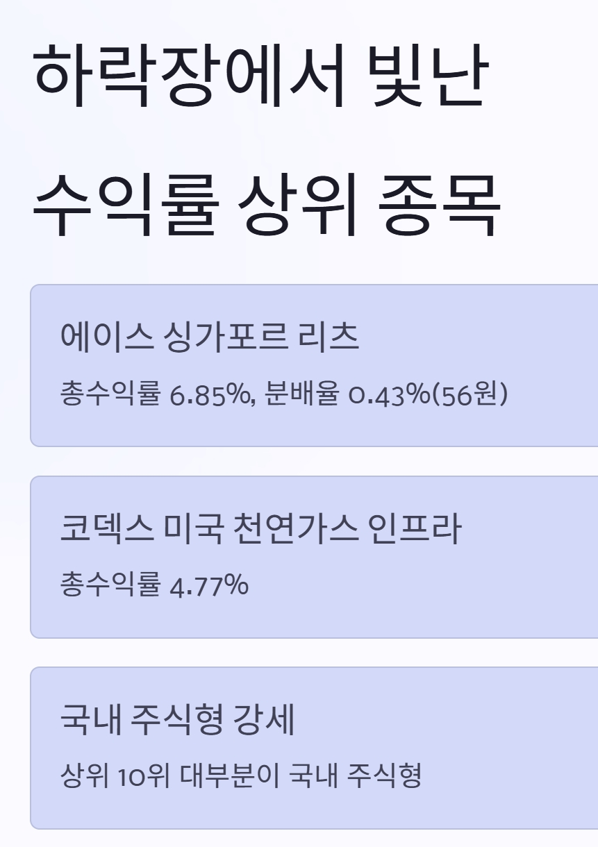 | 1 | 리츠 | ACE 싱가포르리츠 | 🔺6.85% |