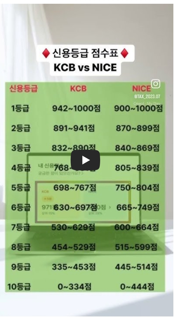 ▼ 신용점수 등급 비교표 영상 시청하기 ▼