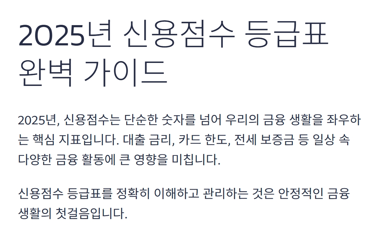 2025 신용점수 등급표 및 점수 올리는 꿀팁