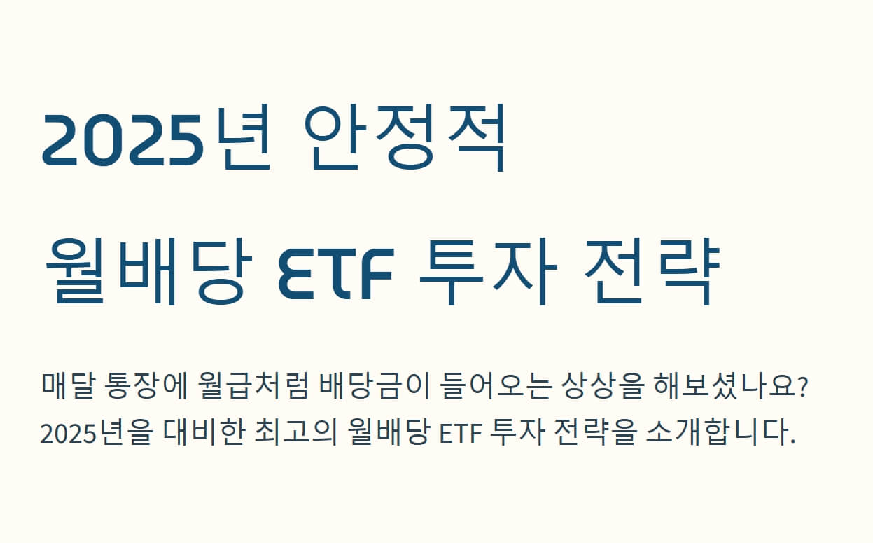 2025년 전문가들이 추천하는 안정적 월배당 ETF 투자법