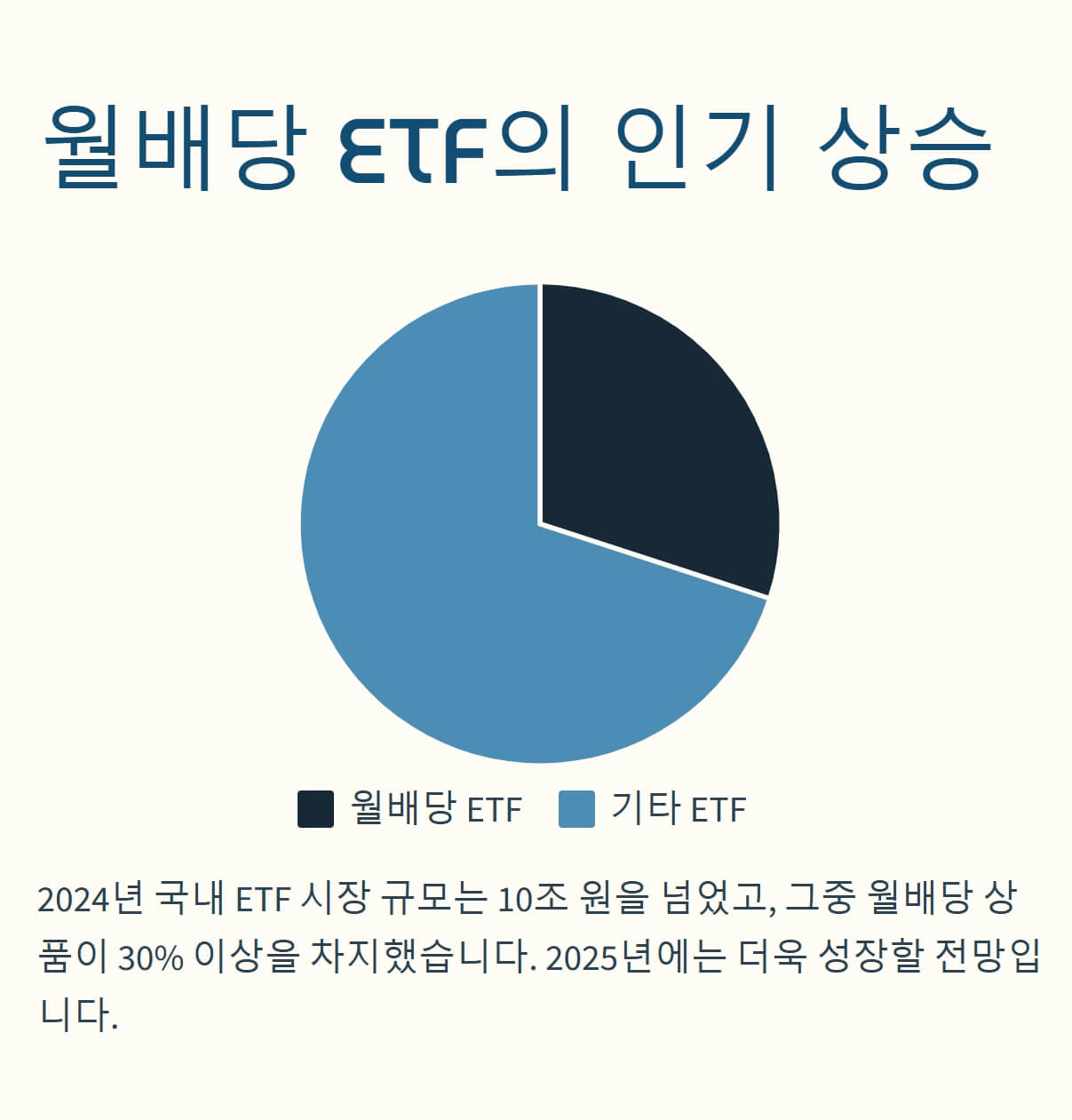 2024년 국내 ETF 시장 규모는 10조 원을 넘었고, 그중 월배당 상품이 30% 이상을 차지했답니다(출처: 금융투자협회).