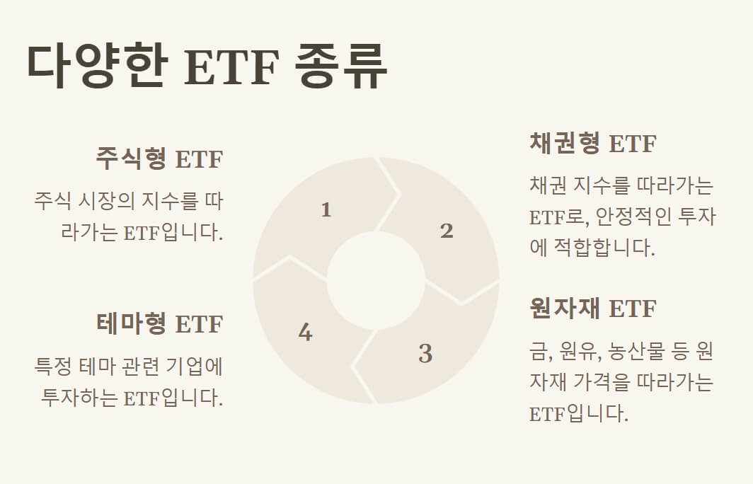 ETF는 정말 다양한 종류가 있어요. 어떤 ETF에 투자해야 할지 고민되시죠? 몇 가지 대표적인 ETF 종류를 소개해 드릴게요.