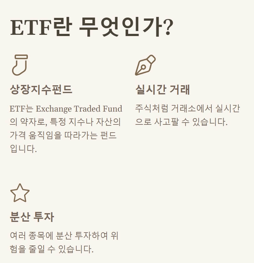 제가 직접 경험해 보니, ETF 투자는 특히 저처럼 소심하고 안정적인 투자를 선호하는 사람들에게 딱 맞는 투자 방법 같았어요.
